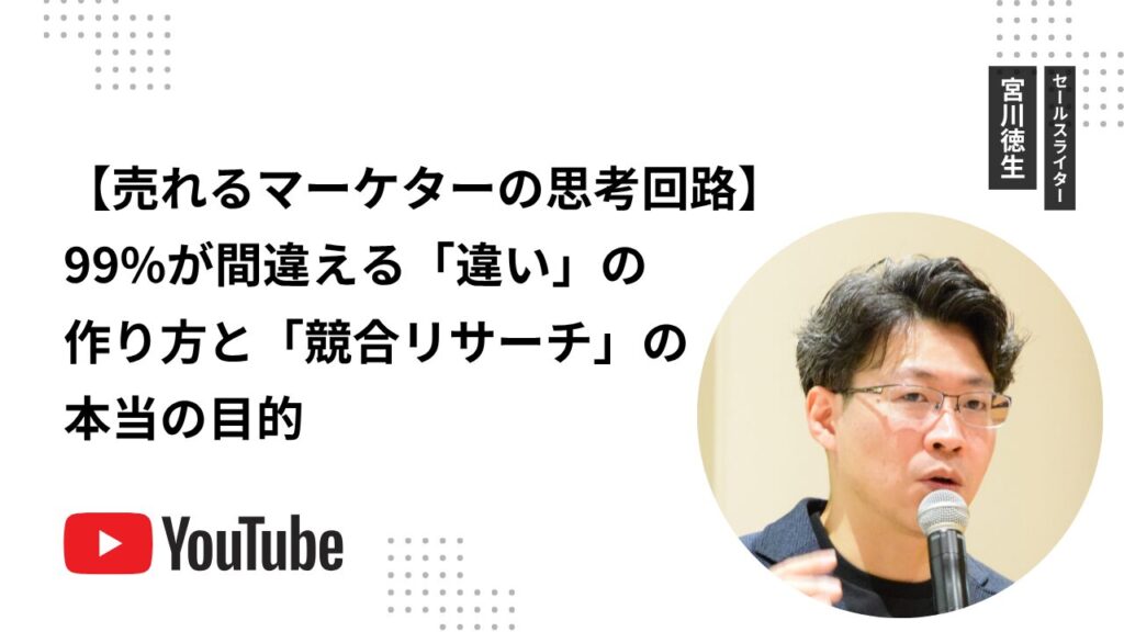 この動画では、セールスライターやコンサルタントなど、マーケティングに携わる全ての人に共通する「売れるマーケターの思考回路」の核心を解説します。