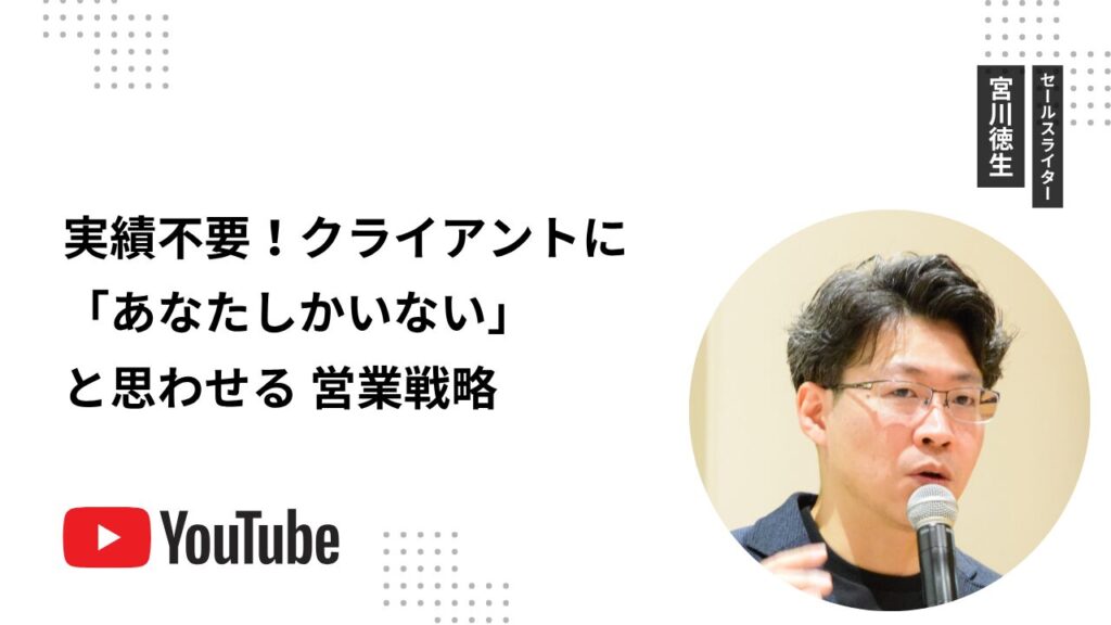 本動画では、なぜ実績がないと案件が取れないという"思い込み"が生まれるのかを解説し、実績ゼロの状態からでもクライアントに「あなたしかいない」と思わせる具体的な方法を公開します。