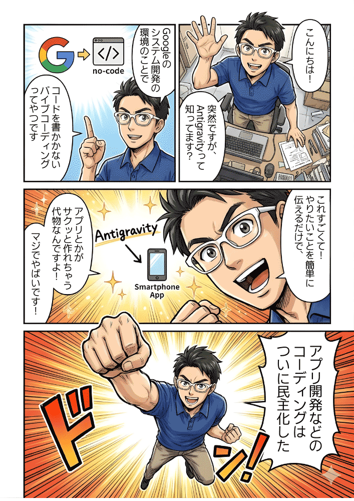 こんにちは、古川です。突然ですが、 Antigravity って知ってます?これ何かっていうと、Googleの開発環境なんですが、いわゆるコードを書かなくてもアプリ開発とかができちゃうバイブコーディングっていうやつなんですが、、、もうね、Antigravityにやりたいことを伝えるだけでかってにコーディングしてアプリとか作ってくれちゃうわけですよ。