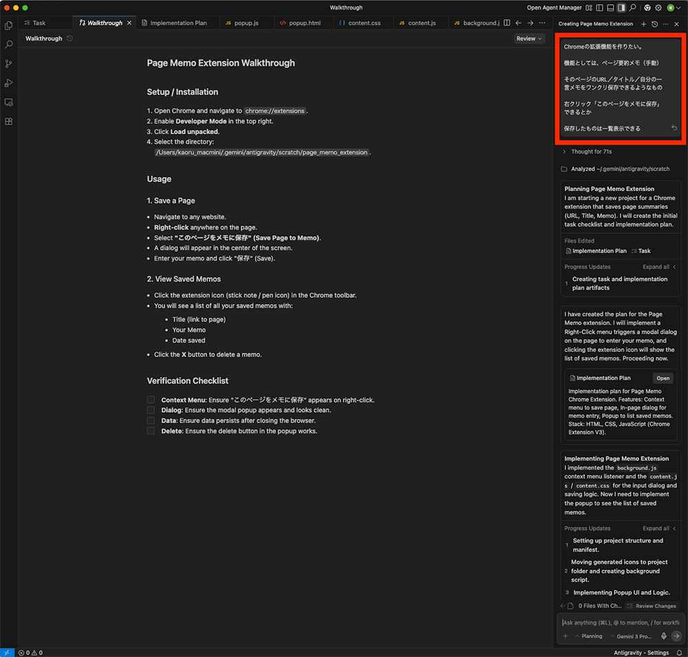 これまではアプリを作ろうと思ったらVScodeとかターミナルとか使ってゴリゴリやっていく感じですが、そんなのは一切必要なし。Antigravityをインストールするだけ。。。