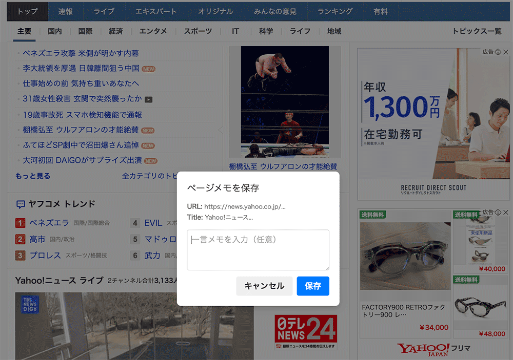 そのページのURL/タイトル/自分の一言メモをワンクリ保存できる