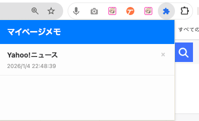 たったこれだけ。コーディングとか一切してないですからね。これだけで、こんなオリジナルのChrome拡張機能ができてしまいました。(まぁ、、、たいしたものではないですが…)ちゃんと機能します。こんな感じ。