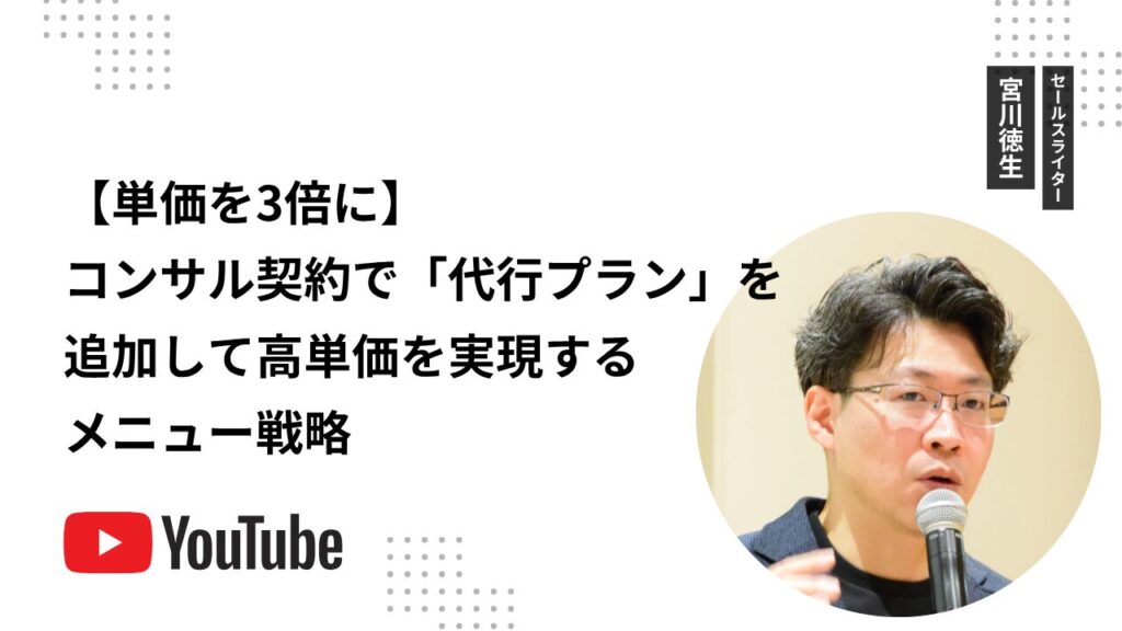 この動画で解説する「代行プラン」をコンサルメニューに組み込むことで、クライアントの不安を解消し、無理なく、そして劇的に単価を上げる方法論を習得してください。