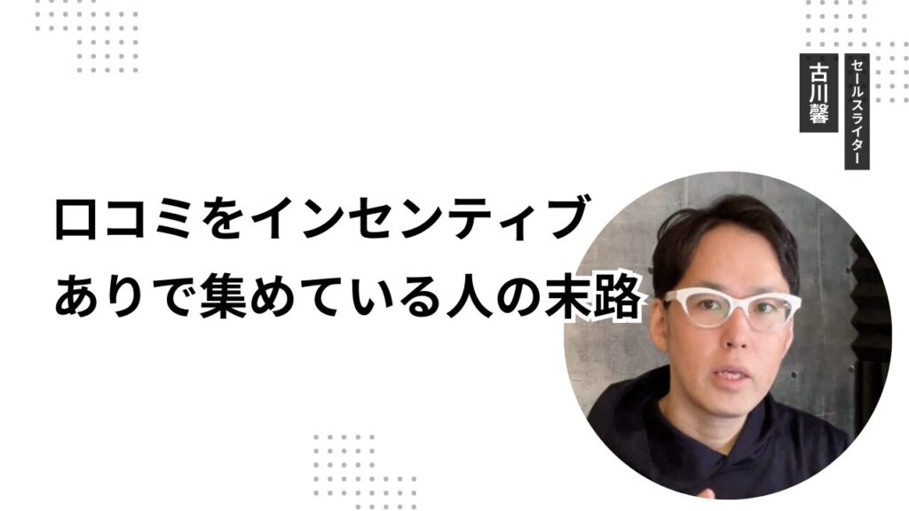 結局、口コミでインセンティブをやるとこういうのが絶対出てくるんですよ。Amazonのサクラレビューでもあるように、不正な口コミで特典もらえるからといって、もらう人ばかりではない。無視する人もいれば、「良い口コミ書いたら安くするって言われた」と書き込む人もいる。これは防げない。