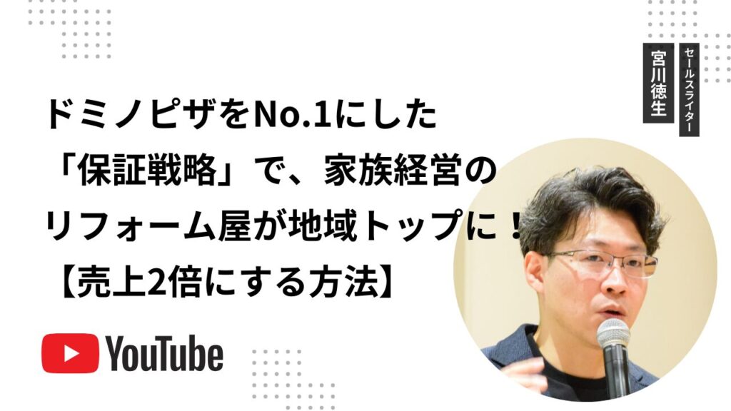 この動画では、その保証戦略を応用して、名前も知られていなかった小さなリフォーム会社が、いかにして地域でナンバーワンの地位を築いたかをお話しします。