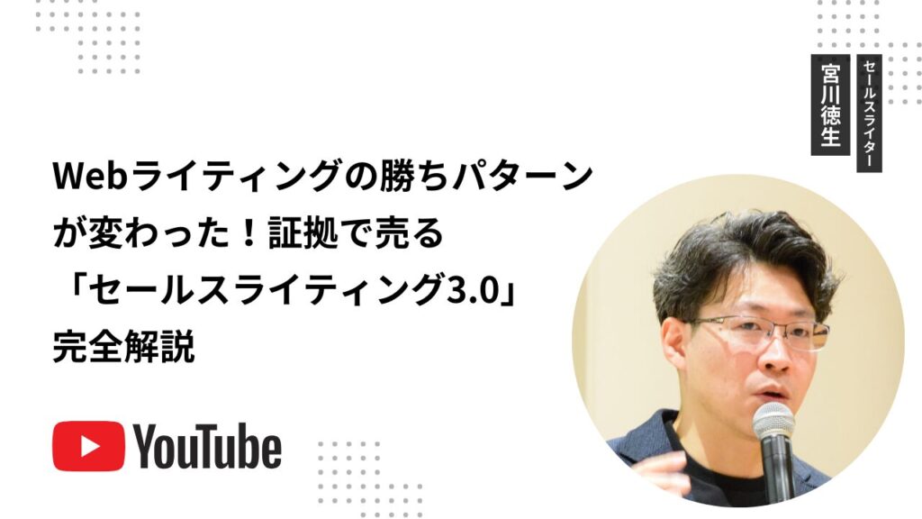 この動画では、セールスライティングの進化を1.0、2.0、そして最新の3.0という3つのフェーズに分けて解説します。そして、3.0時代で圧倒的に勝つための「究極の武器」とその集め方について、具体的に公開します。