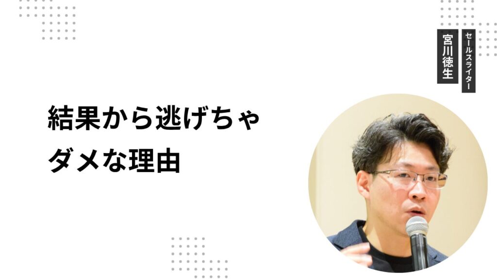 だから、我々は結果から逃げちゃダメだし結果を出すために知識やスキルを